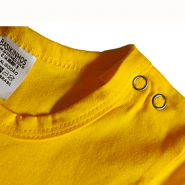 Praticidade: Possui 2 botões de pressão entrepernas e gola estilo americano, que facilita a retirada da peça por baixo em casos de vazamento, evitando sujeira.