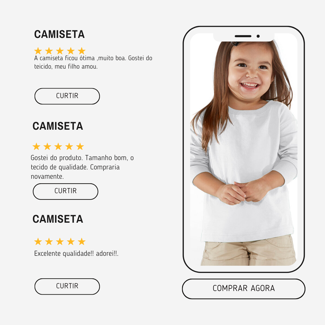 A camiseta manga longa da Basikinhos foi pensada do jeito que as crianças merecem: tecido macio, leve e respirável que cuida da pele delicada dos pequenos enquanto eles correm, pulam e exploram o mundo.